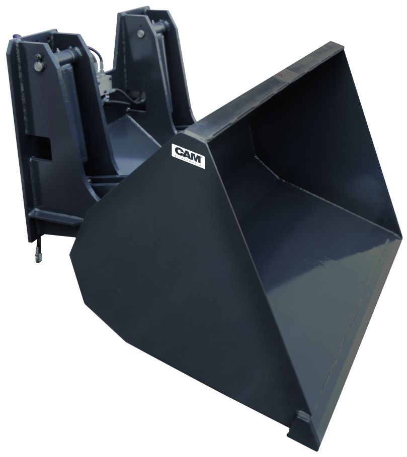 Om bulkmateriaal zoals zand, grind of afval eenvoudig te lossen, bevestig je de kiepbak van CAM attachments aan de vorken van de heftruck. Laden, verplaatsen, kiepen, klaar.